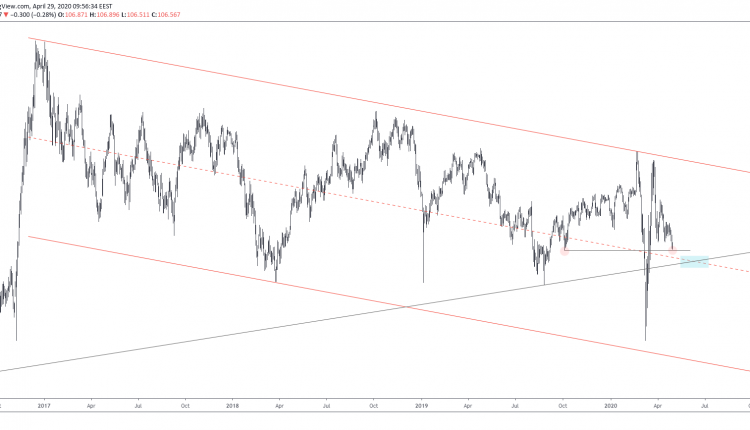 The descending channel starting January 3rd, 2017 suggests that the 106 round support is a critical intercession level of the center channel trendline and price.