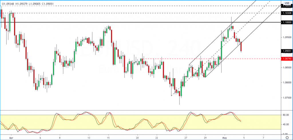 This decline could potentially see the euro slipping to the lower support level of 1.0879.