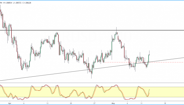 The euro currency is posting modest gains after consolidating near the technical support level of 1.0818.