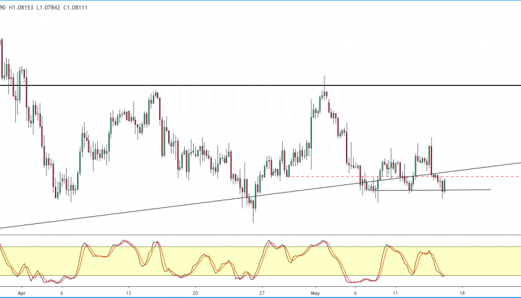 EURUSD drops below 1.0811 support