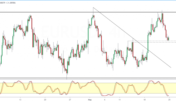 Notice the hidden divergence on the Stochastics oscillator, which confirms that there could be some upside building up. But for this to happen, the EURUSD will need to break out above the 1.1000 level.