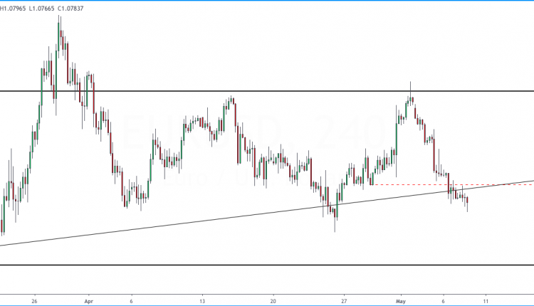 EURUSD trades flat as trend line is broken
