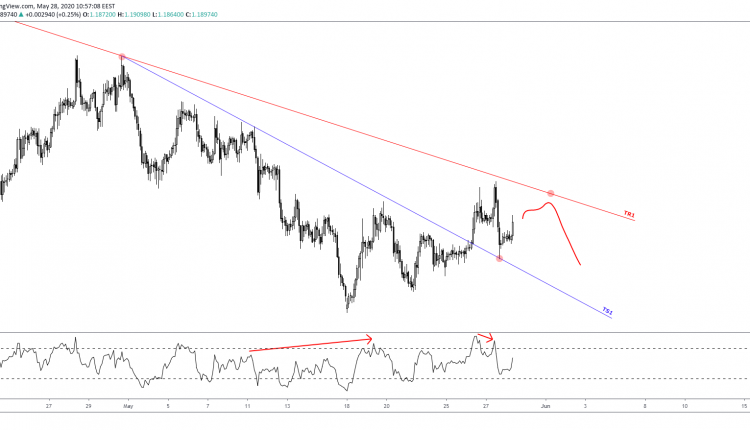 With prices trading near the trendline resistance TR1 starting Feb 18, ’20 we could see the pair moving up for a retest as the bullish attempt on May 27 was weak.