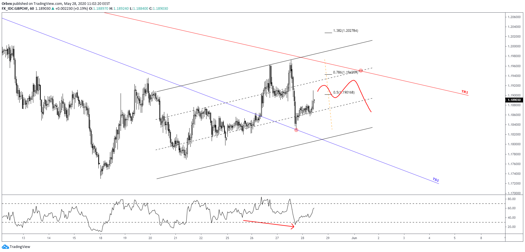 In the short-term, we can expect prices to continue higher towards the 1.1950 area before sliding lower. This is unless the rejection at the 50% retracement near 1.19 weighs on the pair.