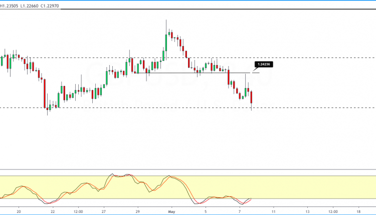 Price briefly tested the lower range level of 1.2277 before pulling back slightly.