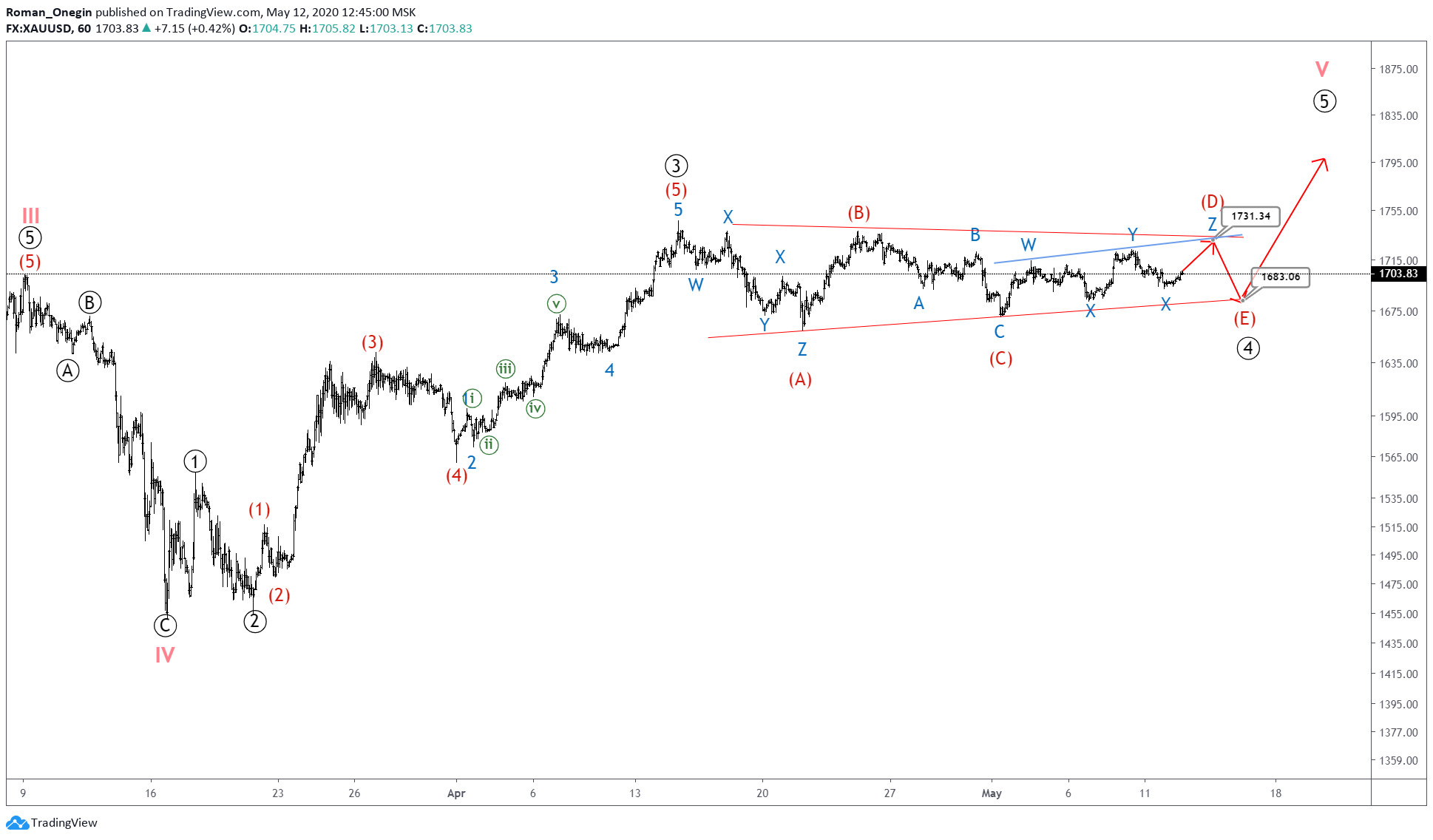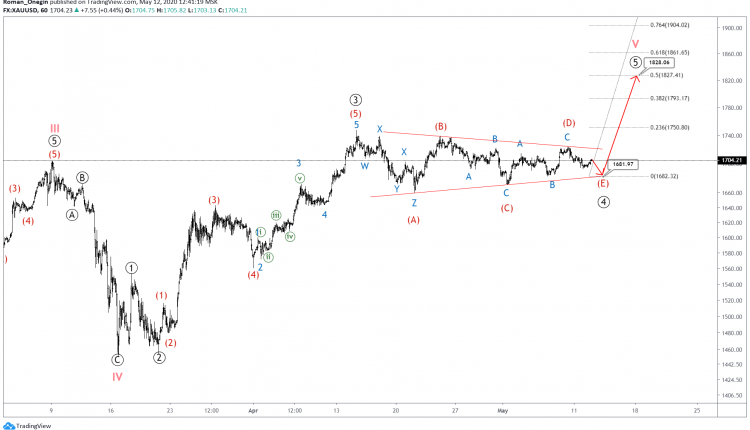 The current XAUUSD formation hints to a 5-wave impulse consisting of cycle waves I-II-III-IV-V.