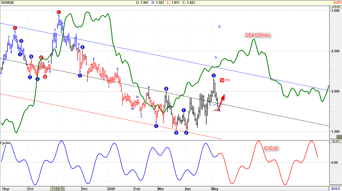 Le quotazioni del Natural Gas hanno improvvisamente fulcrato un movimento ribassista sui massimi segnati settimana scorsa a quota 2.40, cumulando così una discesa di oltre l’11%. Tenendo conto dell’alta volatilità che connota il mercato Energy in questo periodo, poniamo i supporti a 1.77 e cioè a ridosso dei minimi segnati il 27 aprile. La resistenza tecnica di breve è stimata invece a 1,88 con la MM a 50 giorni fortemente attrattiva. Negativa la fase di momentum, con indicatori tecnici in fase di crossover ribassista. Lo slancio sopra quota 2.00 è stato quindi bruscamente respinto e proprio per questo la magnitudo attesa al ribasso si prospetta elevata. Da considerare la stagionalità positiva asincrona ad una ciclicità negativa.