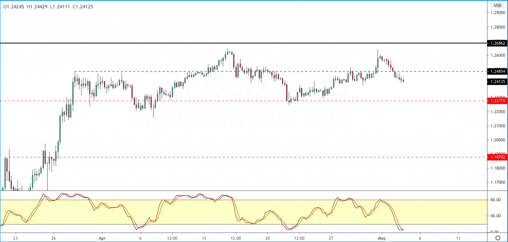 However, with the Stochastics hinting at a possible hidden divergence, we could see the upper end of the range at 1.2485 being tested.