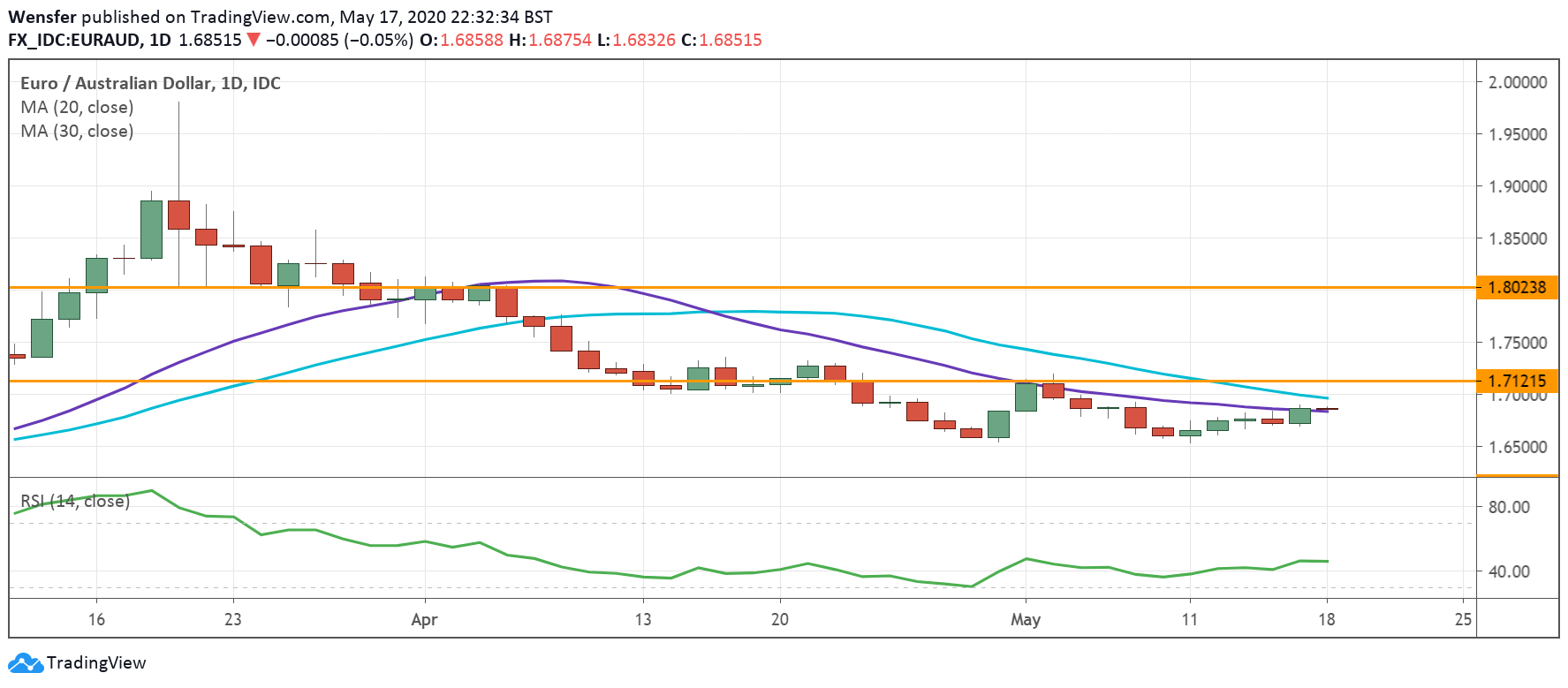 Traders will focus on this week’s ECB press conference, and should the central bank reaffirm its optimism, the single currency may start to nudge higher. 1.7100, near the 30-day moving average, is a key resistance area, failure to break out would reinforce the bearish sentiment.