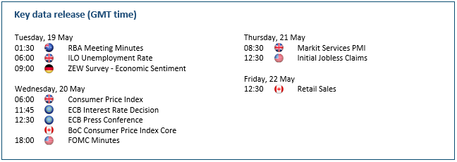 The Canadian dollar has found some support from the latest rally in the oil market. China’s industrial production climbed 3.9% in April and gave a boost to commodity markets. Both commodity-sensitive Aussie and loonie are likely to benefit from improved sentiment.