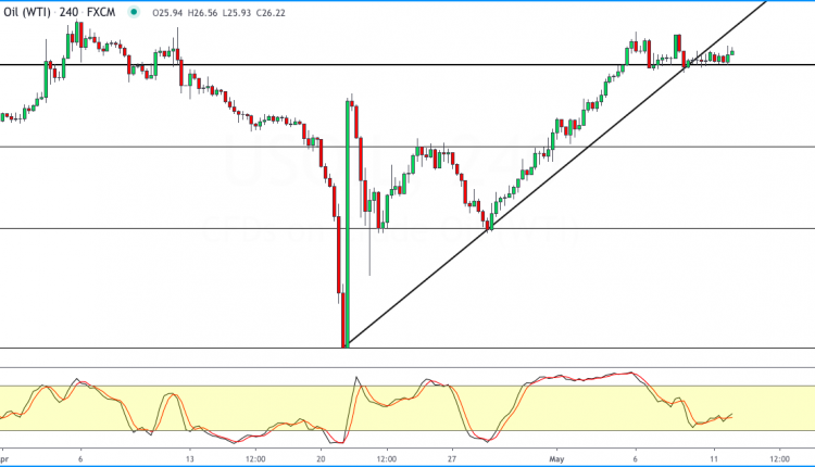 WTI crude oil breaks rising trend Line but trades flat