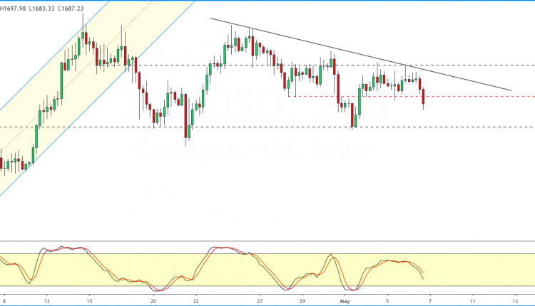 If gold prices lose this support, we expect to see steeper declines. For the moment, the minor support level at 1691.76 is breached.