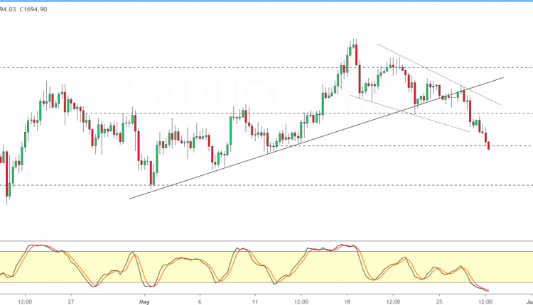 The breakdown below this level has led to gold falling over 0.80% intraday.