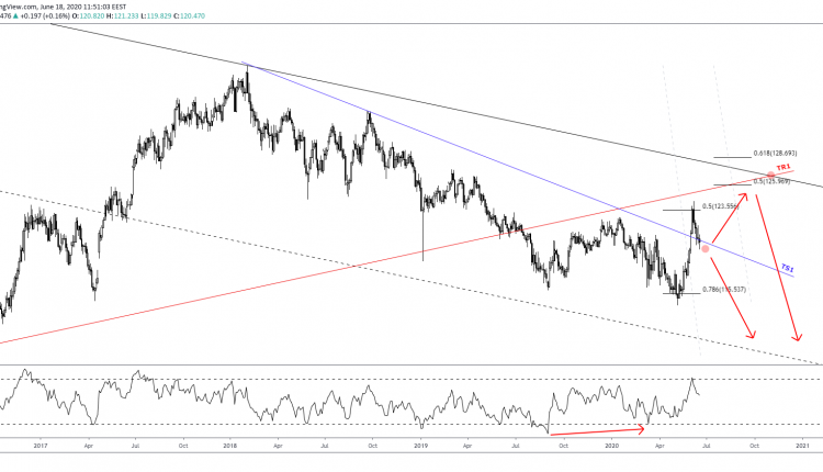 In case prices break below 118.00, however, the chances of a decline towards the 115.00 (and perhaps to the longer-term target below 110.00) will increase. This would suggest an earlier-than-expected bearish continuation.