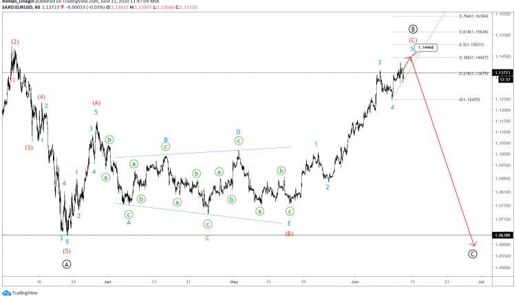 According to this structure, the bullish impulse (C) could complete near 1.161. At that level, wave (C) will be at the 161.8% extension of wave (A).
