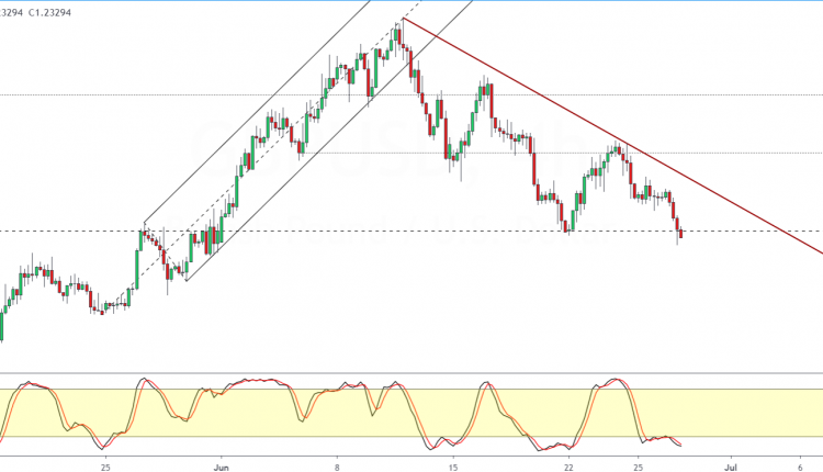 The declines came amid consistent lower highs forming since 16th June. Price action is now testing the price level near 1.2444.