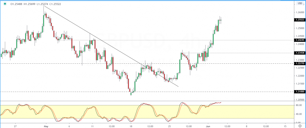 The next main resistance is at 1.2589 which could put the temporary gains on hold for the moment. This will mark the highs from April 30th.