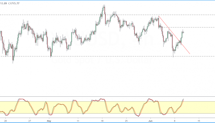 The precious metal is up over 1% intraday on Tuesday. The gains came after prices bounced off the lower support level near 1671.95.