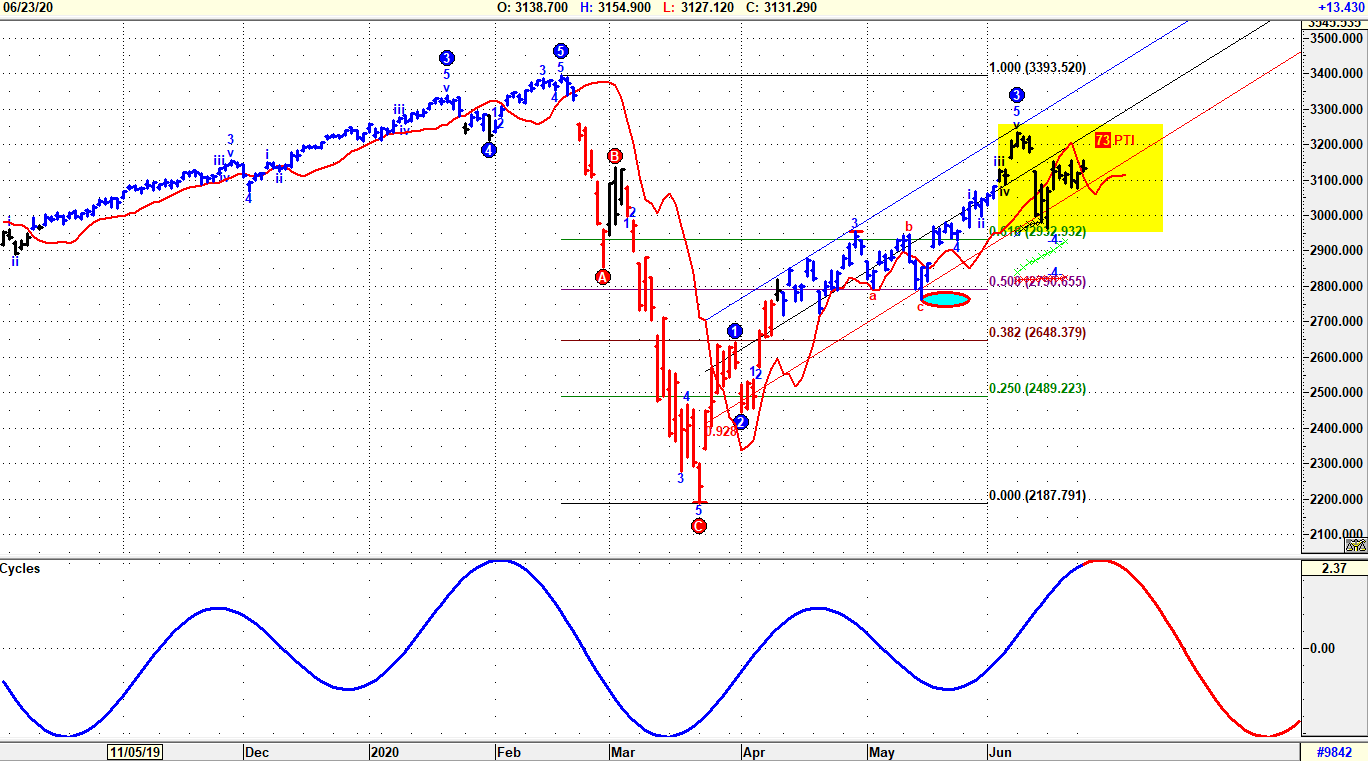 Malgrado una buona spinta rialzista l’indice S&P500 non ha ancora ripreso i massimi di fine febbraio visti in area 3,400, contrariamente all’indice Nasdaq100. Questa distonia, peraltro ribadita anche dall’indice DJ30, pone dubbi sulla persistenza di questa fase Risk-On. Strutturalmente lo status è rialzista ed integro in tutte le sue componenti, ma l’elevata volatilità abbatte notevolmente la confidenza degli operatori, sempre più compratori netti di opzioni OTM a copertura di eventuali ribassi. Per le implicazioni tecniche assunte si prospettano ipotesi di re-test in area 3,200-3,250, con incastro di Onda 5 validata per riattaccare i massimi. Lo scenario alternativo osserverebbe invece un re-coil tecnico per target stimato tra 2,850 e 2,920, con Onda 4 estesa in sotto ordine a-b-c. Da seguire il test eventuale a 2,920 dove staziona anche la MM50 giorni, insieme ad altri riferimenti tecnici spazio-puntuali di acclarata affidabilità.