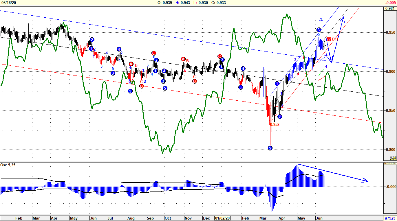 Forte persistenza rialzista del Dollaro australiano (AUD) contro la il Dollaro canadese (CAD) che punta la resistenza in area 0.940. Strutturalmente il movimento rialzista si va ad incastrare come Onda 3 dell’intero processo impulsivo originato sui minimi di marzo in area 0.80. Complicato dipanarne lo sviluppo dei sotto movimenti minori, ma il minimo più recente in area 0.926 potrebbe aver chiuso in anticipo Onda 4 correttiva e precedere il riattacco ai massimi in definizione di Onda 5. Vedremo se questo sarà lo scenario più coerente con le implicazioni tecniche assunte che osservano un momentum in grande forza e una impostazione rialzista di tutte le medie di riferimento, peraltro senza scarti speculativi. Riepilogando, la resistenza stimata tra 0.941 e 0.945, per cui rimanere al di sopra di quota 0.926 è cruciale per attaccare le resistenze ed allungare verso nuovi massimi di periodo.