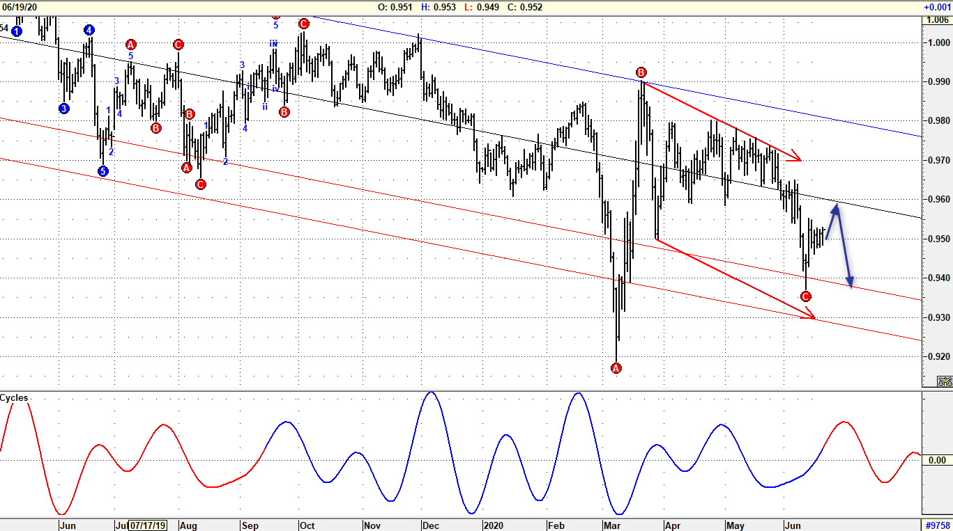 Fino a quando le quotazioni di USDCHF rimarranno sotto 0.965 le prospettive neutro-ribassista già delineate nei precedenti report rimarranno invariate. Strutturalmente il bias rimane quindi neutrale, con la formazione di un supporto tecnico a breve termine, formatosi a 0,937. Implicazioni positive vanno per il momento riferite alla tenuta di quota 0.950, sulla quale potrebbe poggiare un nuovo allungo verso quota 0.962 dove incrocia la MM a 55giorni. Ovviamente un ritorno sotto 0.937 farà propendere verso una nuova fase ribassista con target stimato in 0.901. Da seguire adesso le modalità di allungo, che per il momento assumono caratteristiche di una semplice correzione rialzista, rispetto alla discesa innescata sui massimi di aprile a 0.99.