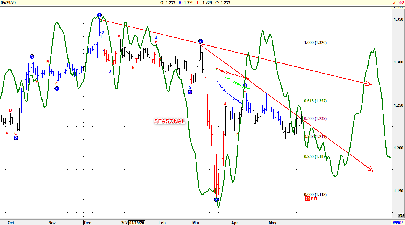 Il “CABLE” non è stato facile da tradare negli ultimi tempi e sembra che nel breve sia schiacciato da due possibili scenari. Il fatto però che sul breve l’Euro stia mettendo sotto pressione il Dollaro, potrebbe restituire nuovo vigore anche alla Sterlina. Il quadro tecnico non è nulla di eccezionale, ma fino a quando l’intonazione dai minimi del 18 Maggio a 1.211 persisterà al rialzo, sarà lecito pensare ad un possibile riavvicinamento verso la media mobile a 200 gg. già testata in configurazione di doppio massimo ad Aprile a 1.264. Lato ribasso, invece, una rottura inferiore e inferiore di 1.212 potrebbe rivelarsi dannosa, allontanando nel tempo qualsiasi velleità rialzista. Un allineamento sincronico alla componente stagionale (linea verde) potrebbe far prevalere il laro ribassista sulle ipotesi di rialzo.