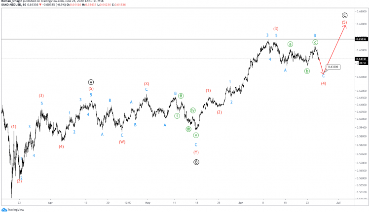 In the short term, we could see the intermediate wave (4) complete its correction near 0.6330. At that level, wave (4) will be at 50% of wave (3).
