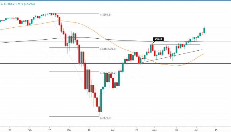 The S&P500 managed to hit the ascending triangle chart pattern target of 3188 last week. The gains came on a successful breakout of the resistance level near 3000.