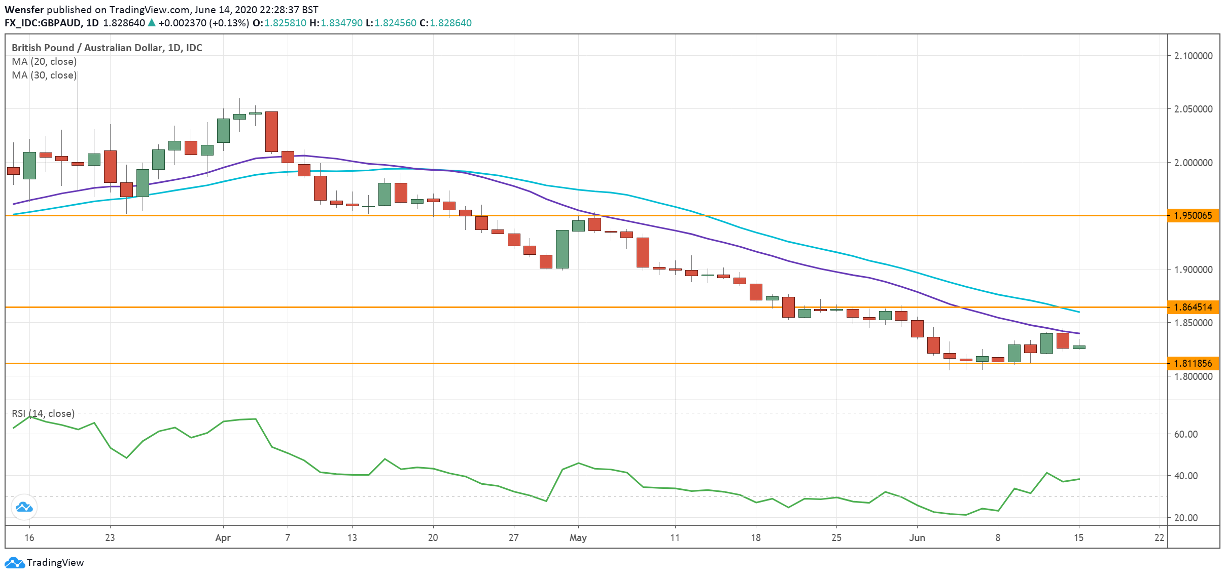 The pound would find buying interests as long as it stays above the key support of 1.8100. The 30-day moving average (1.8650) is the immediate resistance in case of a rebound.
