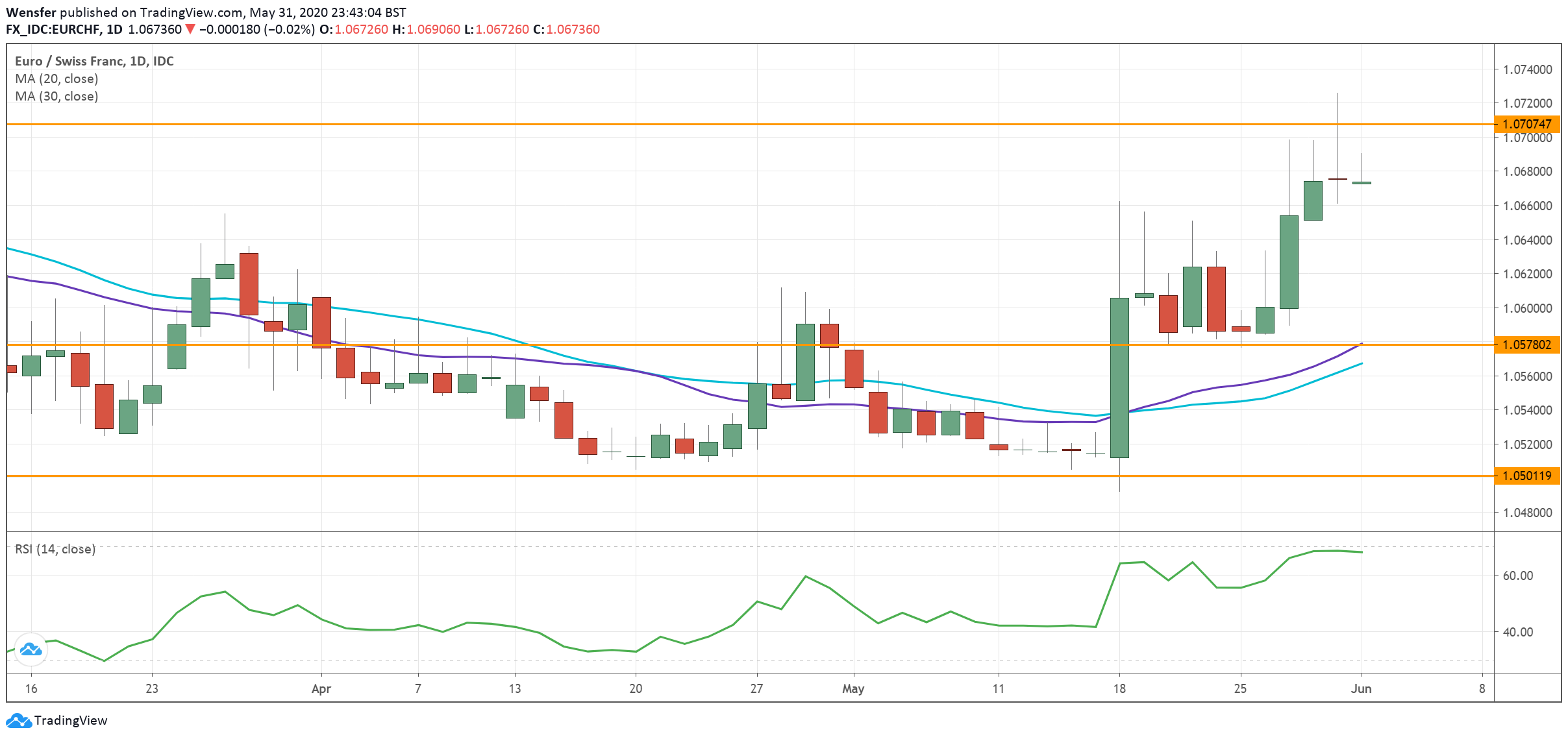 The euro climbed to an 11-week high against the Swiss franc after the European Commission proposed a 750 billion euro recovery plan. Optimism grows as the EU’s 27 nations are expected to settle their differences and seal the deal in the coming weeks. Should everything go smoothly from now on, confidence in the single currency could be restored.