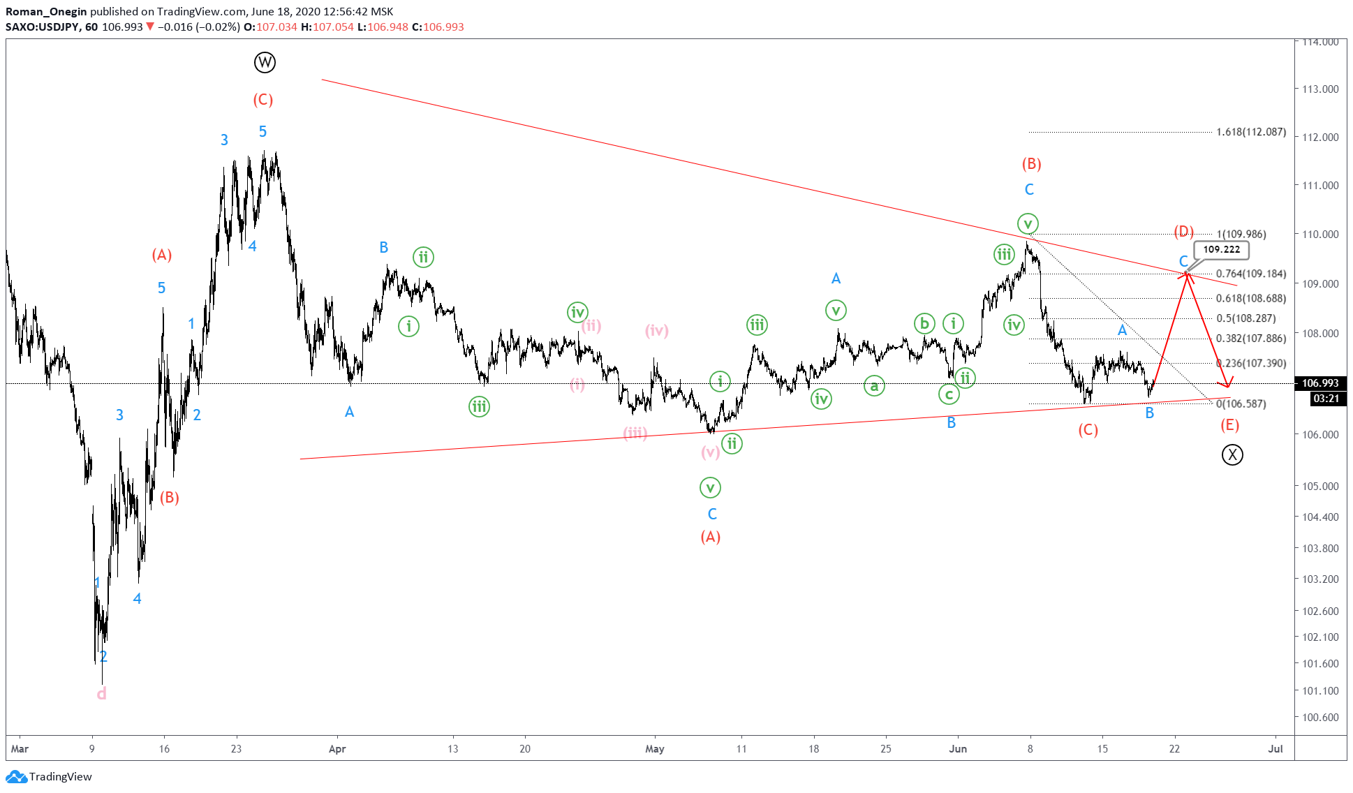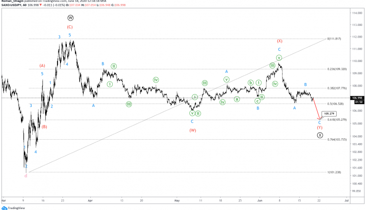 We talked about the bullish double zigzag pattern forming on USDJPY a couple of weeks ago. It consists of primary sub-waves Ⓦ-Ⓧ-Ⓨ.