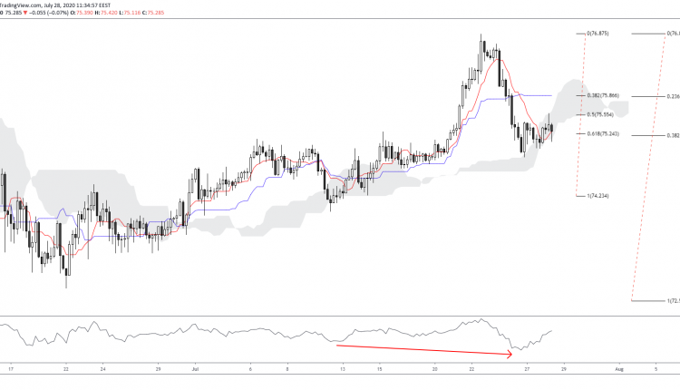 In addition, the full body of the 4h candlestick trades within the Ichimoku cloud while the Tenkan rejected bears. Should prices remain within the cloud, a breakout towards the 50% Fibonacci at 75.55 can be expected.