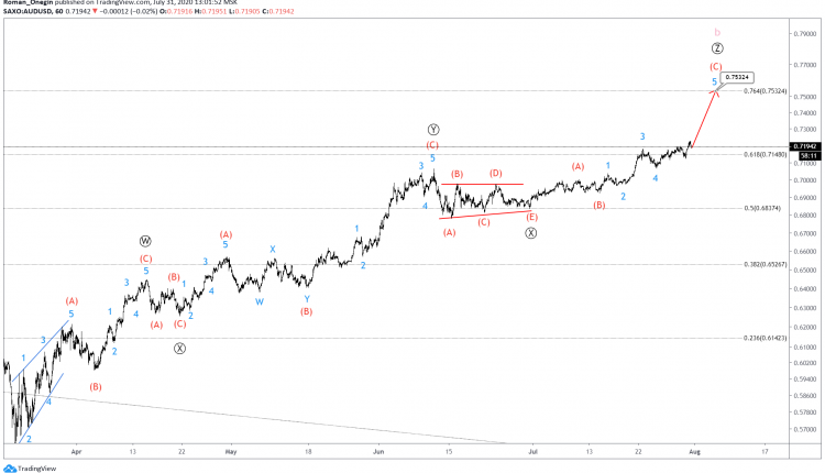 In the short term, we can expect AUDUSD to rise in minor wave 5, near 0.753. In this area, wave b will be at 76.4% of wave a.