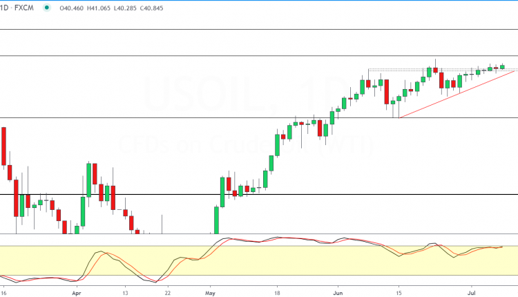 The spot price of WTI crude oil is trading just a few points above the 40.00 handle, nearing the 41.00 level.