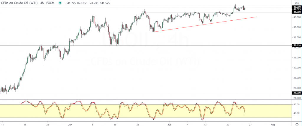 However, sellers promptly pushed prices lower. WTI Crude oil is now trading flat within the 42.00 and 41.00 levels.