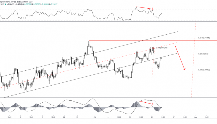 With the top at 0.9124 holding firm, the chances of a bearish continuation will increase. The short-term RSI (14) supports this narrative. But we do expect the upside to be invalidated only on a break of the 0.9176 high.