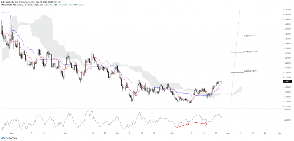 EURNZD has recorded a continued bearish move from the high of 1.9925 to the low of 1.7163. The momentum indicator, however, showed a hidden bullish divergence that was followed by a bullish standard divergence. This is often a signal for a trend reversal.