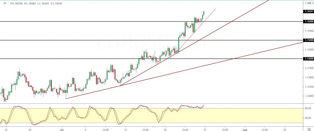 The common currency closed the week with one of the strongest gains in over a month, closing at 1.1655. It also marks a fifth consecutive weekly gain.
