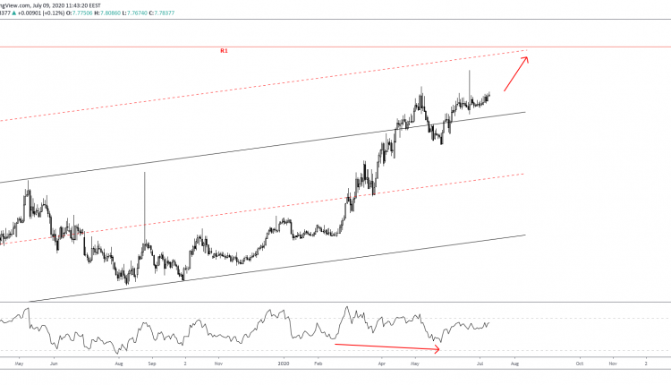 That said, we are lacking a clear break above the median regression. This is near the 7.80 resistance at the current market. The test suggests that bears could take control until a fresh short-term low is reached.