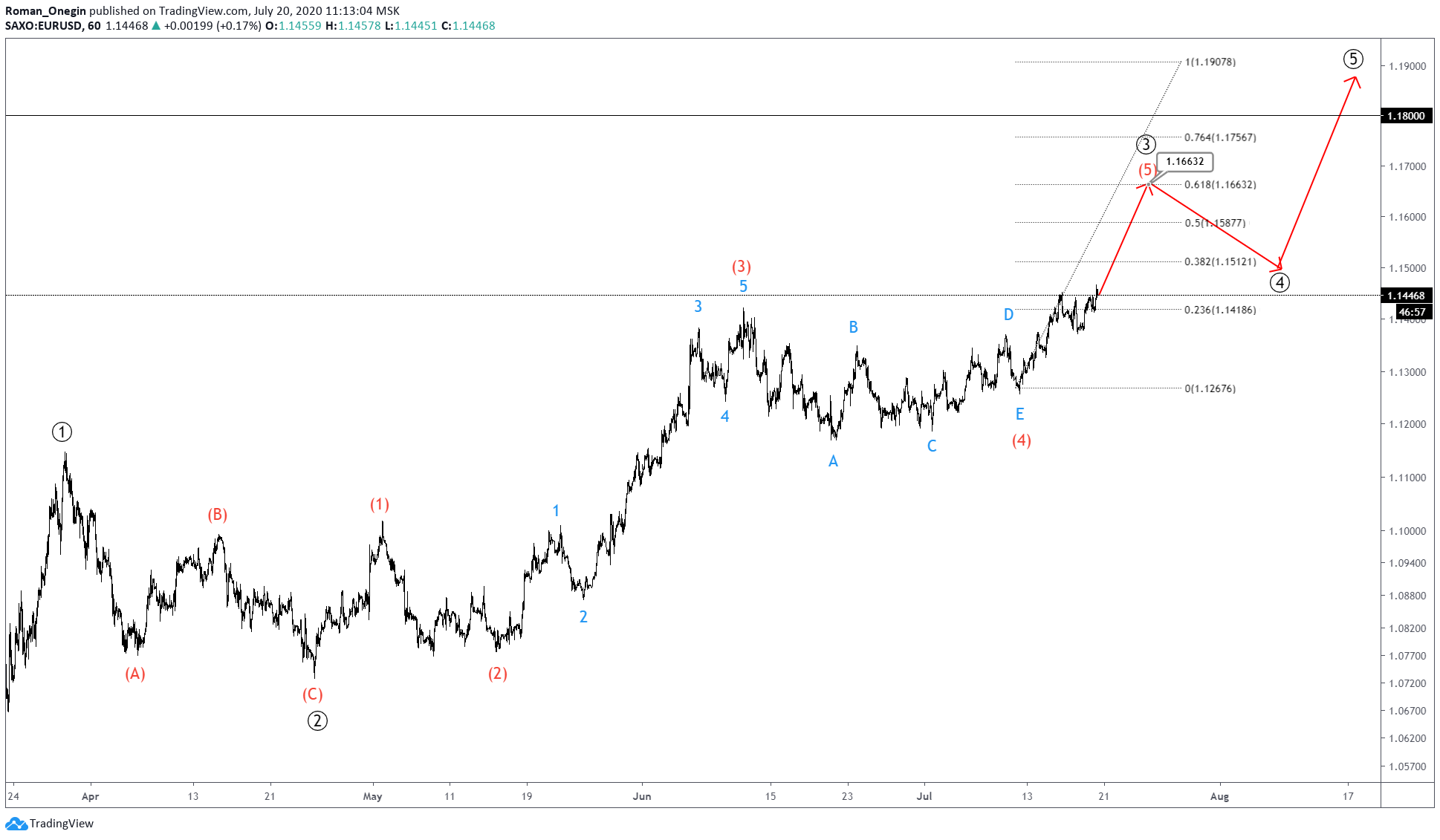 We expect the alternative scenario to push the market higher as part of wave (5). Near 1.166, the price will reach the 161.8% of wave (3).
