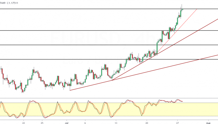 The parabolic rise in the euro however puts focus on a possible correction. If price can close above the 1.1750 handle, then we expect EURUSD to potentially target the 1.1800 level next.