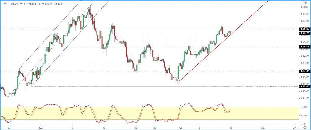 A break down from the trend line might accelerate the decline to the 1.2516 level.