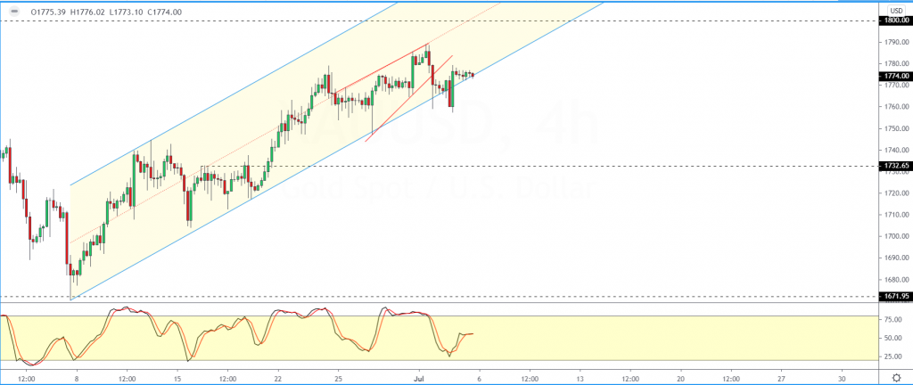 A bearish close below the doji’s low of 1757.40 could signal a correction could be underway.