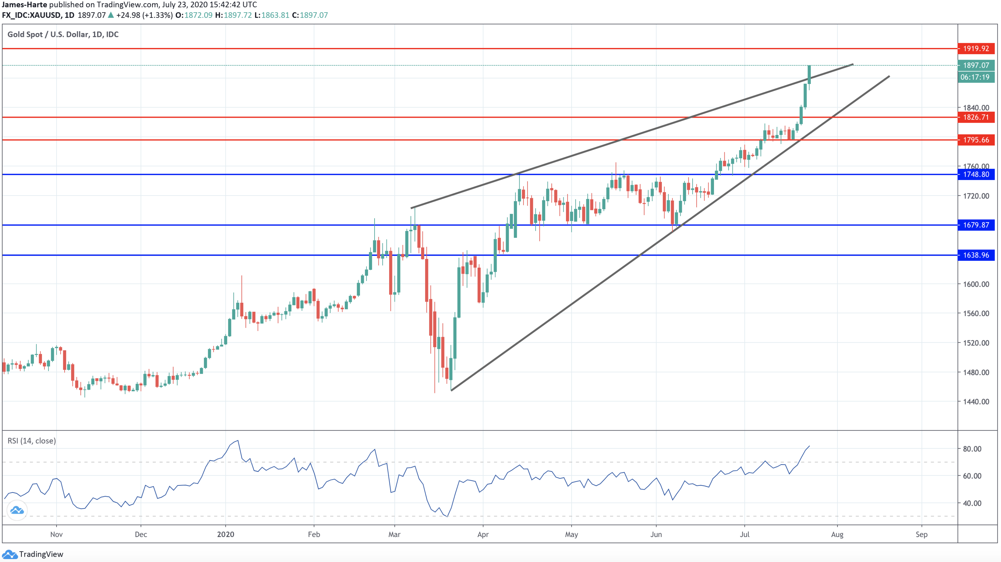 Tensions between the US and China this week have also driven a strong safe-haven inflow into gold following news that Trump has ordered the closure of the Chinese consulate in Houston. China has warned that it could retaliate by closing the US embassy in Chengdu while Trump has said it is possible more Chinese consulates in the US could be closed.