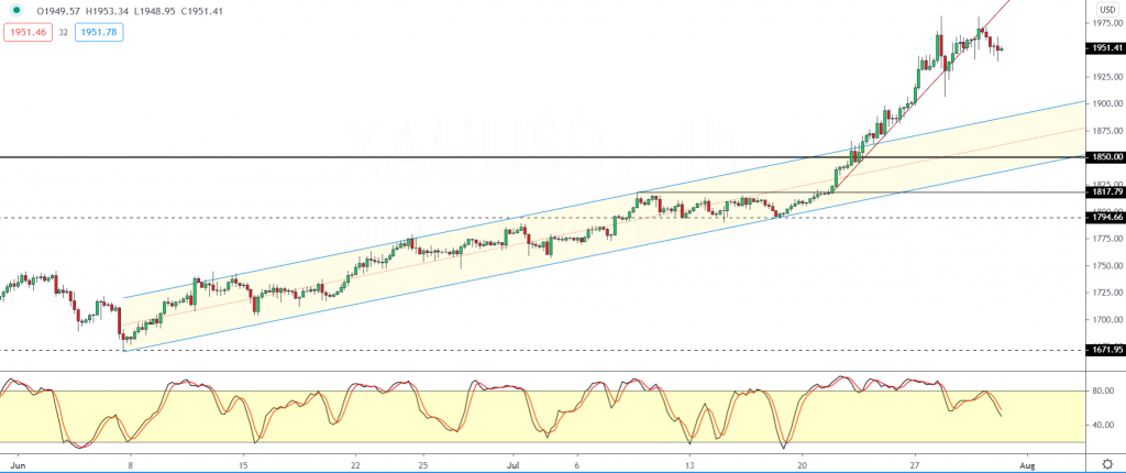 We could expect the declines to continue as traders are likely to book profits into the month-end. For July, gold prices have risen over 9%, marking the biggest monthly increase since June 2013.