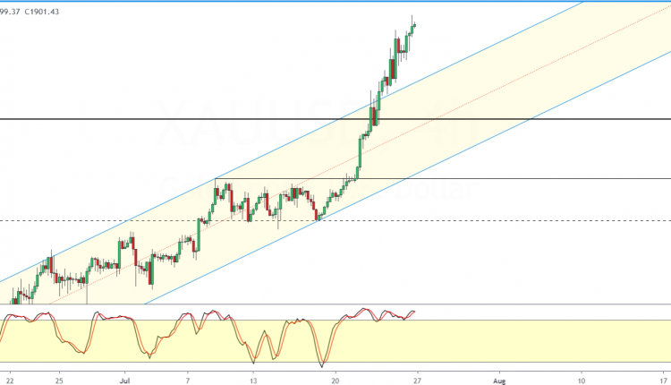 The weekly gains are also the best since March this year. The bullish momentum in gold prices are likely to keep the upside supported. But this also comes a high risk of a correction.