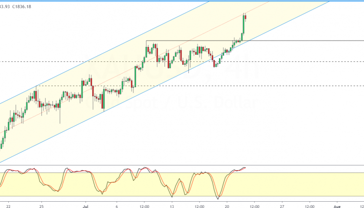 Price touched the 1841 levels intraday after breaking past the 1817.80 level of support.