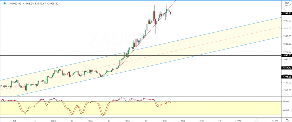 But the lower support is at the 1906 level. If this level breaks, then gold prices might be looking for a deeper correction.