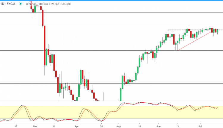 Oil prices remain firmly entrenched in a sideways pattern. The strong resistance area near 40.36 – 40.50 level is so far proving hard to break.