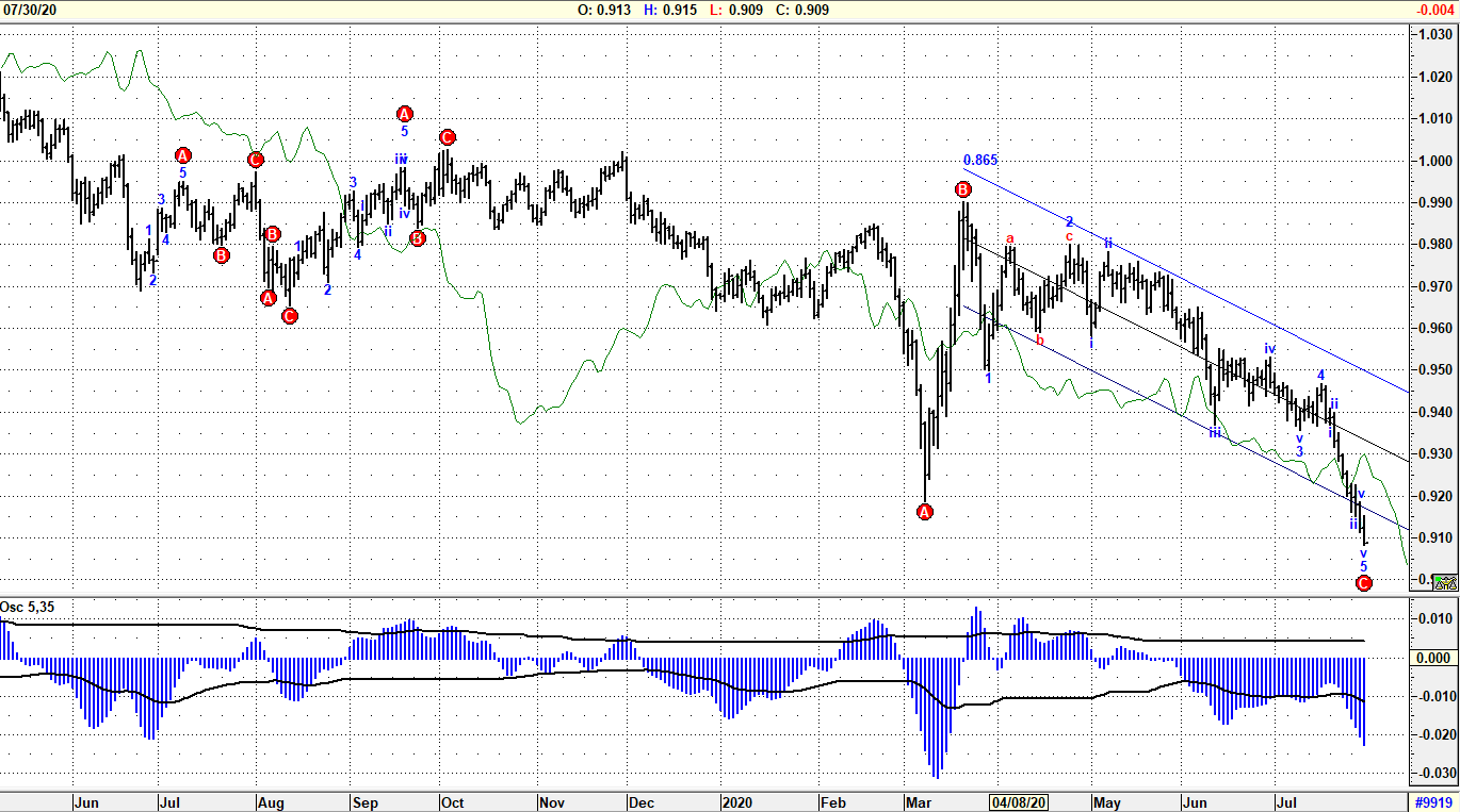 Fino a quando le quotazioni di USDCHF rimarranno sotto 0.920 le prospettive ribassiste, già delineate nei precedenti report, rimarranno invariate. Strutturalmente il bias rimane quindi negativo, con la formazione di un supporto tecnico a breve termine, formatosi a 0,906. Implicazioni positive vanno per il momento riferite al recupero di quota 0.925, il cui superamento potrebbe produrre “boost” verso quota 0.945, cioè a ridosso di 2STDV rispetto alla retta di regressione che sta tracciando il ribasso dallo scorso marzo. Ovviamente forzature sotto 0.906 produrranno nuovi “drop” con target stimato in 0.901. Da sottolineare il forte stress degli indicatori di momentum che, in posizione simile, in passato hanno sempre fornito spunti reattivi.